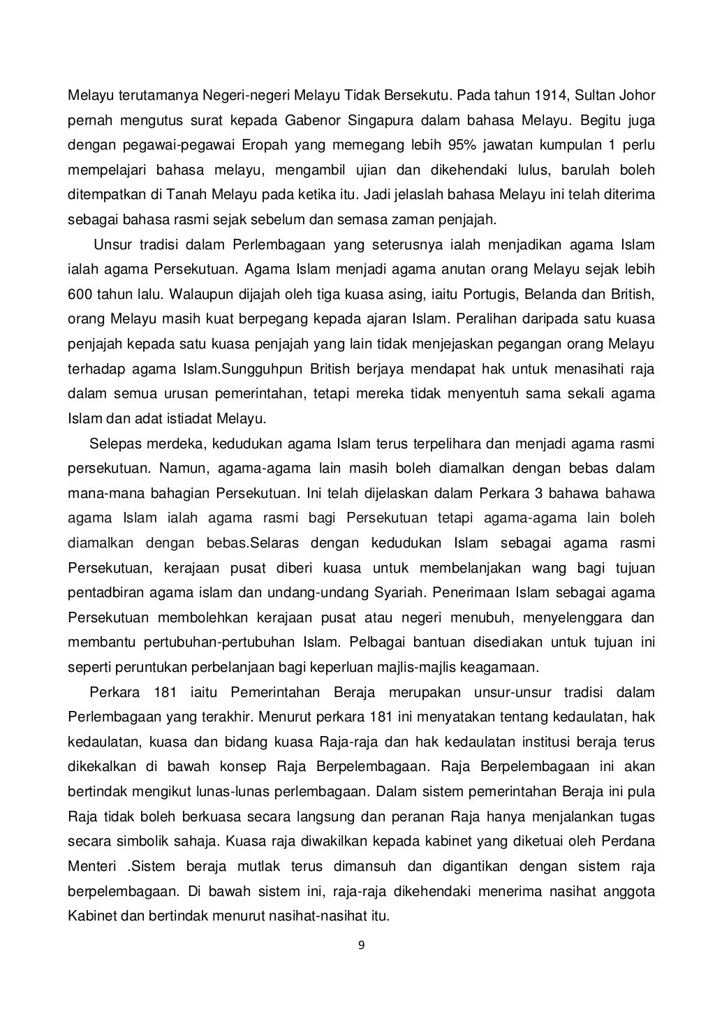 Sebarang unsur pemaksaan yang boleh. Peranan umno menegakkan islam dalam perlembagaan persekutuan: Ketua utama negara bagi persekutuan, dan isterinya. 1)antara perkara utama yang disebut dlm perlembagaan persekutuan termasuklah mewujudkan satu sistem kerajaan persekutuan. Peranan unsur unsur tradisi perlembagaan malaysia.