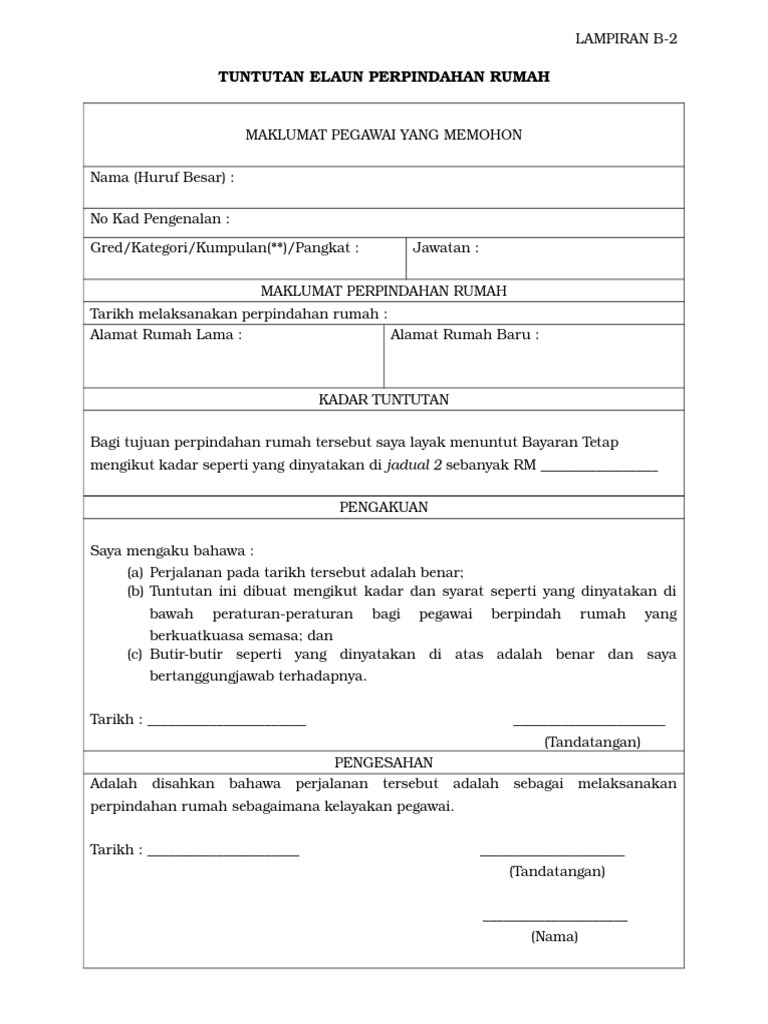 Related : Borang Tuntutan Pindah Rumah / Perwakilan 4 2 3 perpindahan rumah yang tidak melibatkan perbelanjaan..