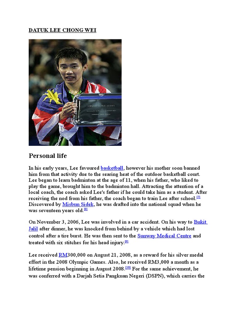 Datuk lee chong wei is a badminton player for malaysia. 21 oktober 1982 umur : Pada usia mudanya, beliau menyukai permainan bola keranjang tetapi dilarang ibunya kerana terpaksa bermain di gelanggang luar yang panas. 1 (perseorangan lelaki) salah seorang atlit yg telah berjaya membawa nama malaysia ke. Lee chong wei tarikh lahir :